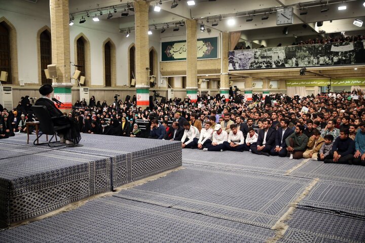 حضرت آیت الله خامنهای در این دیدار فرمودند: من قبل از آن که وارد صحبت بشوم، اشاره میکنم به مطالبی که این جوانان عزیز به عنوان پیشنهاد، به عنوان نظر در زمینهی مقابلهی با استکبار ذکر کردند، این را من عرض بکنم، همه بدانند، جوانهای عزیزمان بدانند، ما در مقابلهی با استکبار همهی آنچه که باید و شاید برای آمادگی ملت ایران انجام بگیرد، چه از لحاظ نظامی، چه از لحاظ تسلیحات، چه از لحاظ کارهای سیاسی، هر آنچه لازم باشد حتماً انجام میدهیم و الان هم بحمداللّه مسئولین مشغول انجام این کارها هستند.
