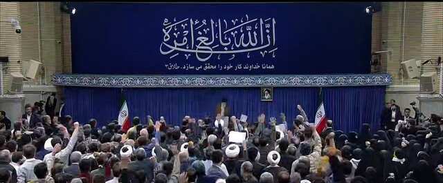 آیه نصب شده در دیدار امروز هزاران نفر از اقشار مختلف مردم با رهبرانقلاب با این مضمون است: همانا خداوند کار خود را محقق میسازد.
